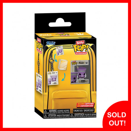 This box contains one Bitty POP! figure from "Boba" and three Keychain-cases for Bitty POP! figures.